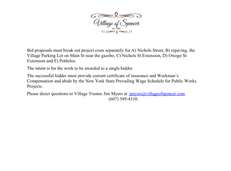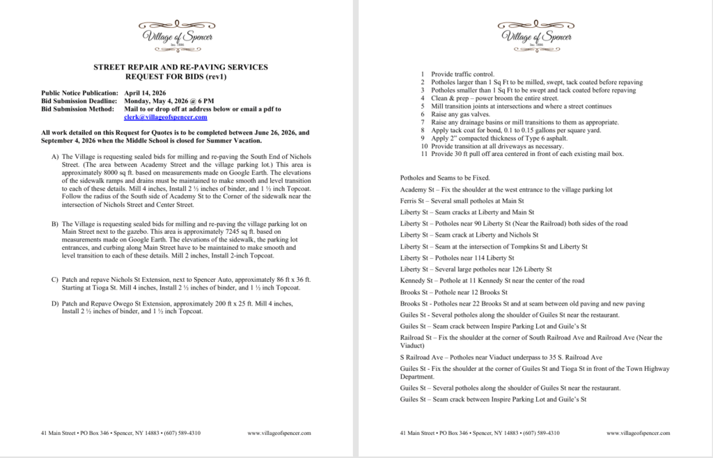 The Village of Spencer will be holding budget workshop meetings on 2/16/26, 3/16/26, 3/23/26